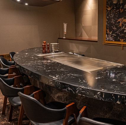 鉄板焼きコースをご注文のお客様限定のカウンター席です。シェフが目の前で調理する様子を眺めながら、厳選された宮崎牛と旬の食材を使用した鉄板焼きをご堪能いただけます。接待や会食、記念日など特別な日のお食事にもおすすめです。