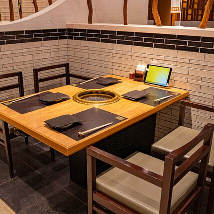 周りを気にせずゆっくりと食事を楽しめる、完全個室をご用意。洗練された韓国モダンな空間で、デートや記念日、ビジネスシーンなど、幅広い用途にご利用いただけます。2名~最大8名様までご利用可能。他にも、お座敷席の半個室もございます。